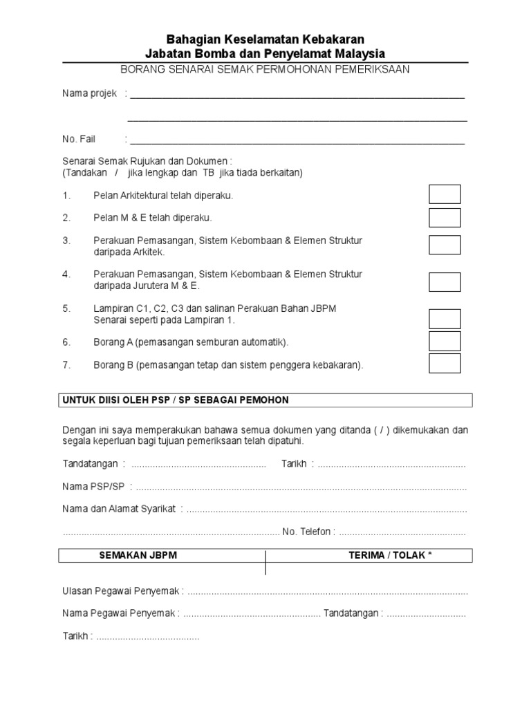 01 Borang Senarai Semak Permohonan Pemeriksaan Pdf